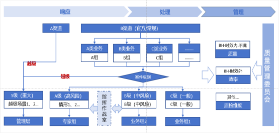 比如家电制造业,客户进线反映其购买的电器出现严重故障导致人员受伤,通话中情绪异常激动并提及会直接到总部找董事长要说法,该案符合越级规则,可直接升级由管理层介入处理,有效避免一线低位运转应对后无果导致风险流出。