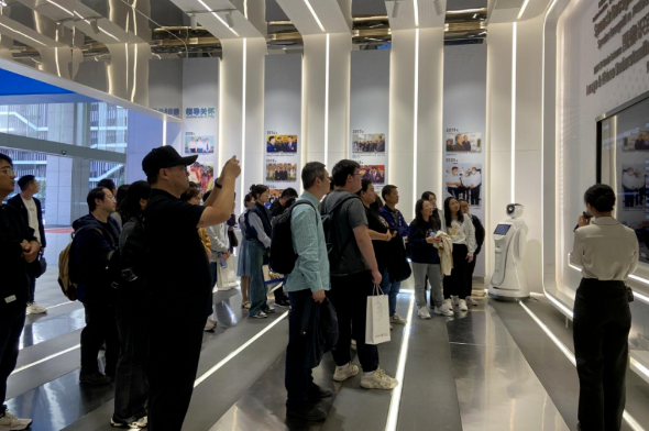 借此机会,我们也有幸被邀请参观科大讯飞人工智能体验馆,让学员亲身体验人工智能的应用场景。体验馆展示了科大讯飞的讯飞开放平台、AI+听见、C端产品、智能汽车、科大讯飞多语种研究院研发成果,以及AI+教育、AI+医疗、AI+工业、AI+智慧城市等多场景的最新技术应用,全方位展现了AI数字经济带来的智慧生活新变化。