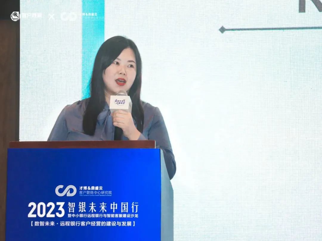 最后,才博&鼎盛云客户联络中心研究院联席院长、河南中原鼎盛云科技服务有限公司总经理——徐倩雯女士进行了总结发言。她认为这次和行业同仁一起进行交流、探讨对行业的发展是有意义的。金融行业作为现代经济核心,要抓住数字化升级重要窗口期,将数字思维贯穿业务全链条,在技术领域进行深度改革,在数字化转型道路上加速科技自主创新,积极探索数字金融破局之路,为实体经济提供更有力、更高质量的支持。她表示,也希望之后能有更多的机会与大家一起分享经验、交流痛点、共寻解决路径。