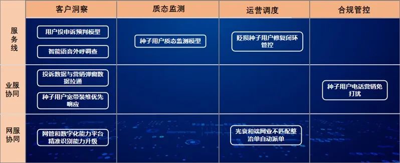 我们基于种子用户“网业服”协同口碑运营体系,分别从客户洞察、质态监测、运营调度、合规管控四大方面,通过大数据建模、系统数据拉通、系统功能填充和流程优化等一系列数字化手段进行赋能。