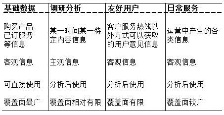 3.友好用户,很多客户服务中心都拥有自己的友好用户,友好用户来源及管理我们可以另起一篇文章详细说明,本文暂且不展开讨论,友好用户会不定时的基于自己使用服务过程中,或使用其他服务中遇到的问题进行反馈,也会直接提出参考意见,是不可多得的客观数据,但友好用户在数量上相对总体的用户数是非常小的,反馈频率及密度、覆盖面等都有局限,且信息也是处理后才用作用户标签。