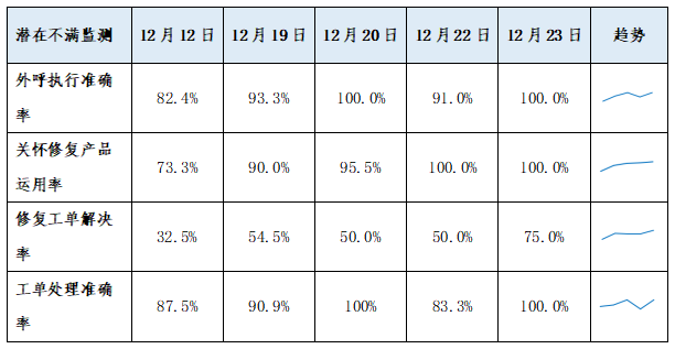 2022年12月对潜在不满客户进行外呼修复,输出上万份问卷,整体修复成功率达70%以上,呈现波动上升趋势。