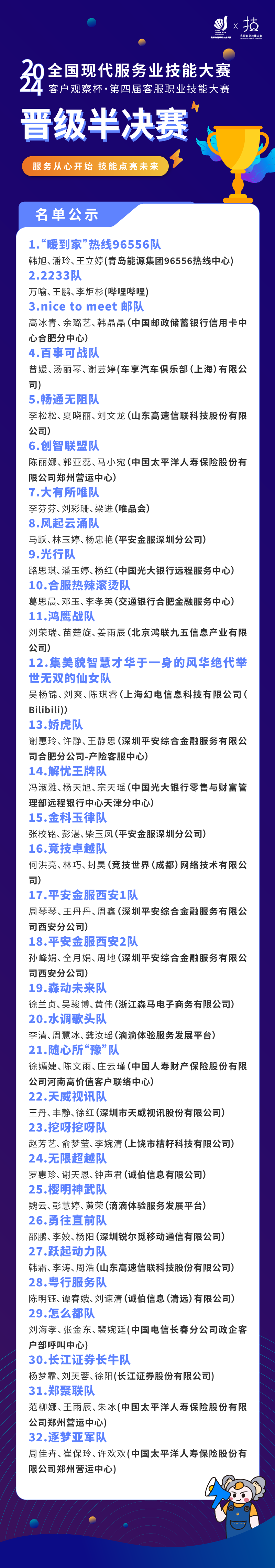 为使选手们能有充足的准备时间,现公布半决赛日期,具体赛程安排请各选手留意组委会发送至选手邮箱的半决赛公示文件,也可关注“客户观察”公众号了解更多。