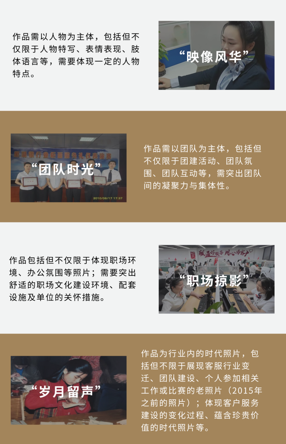 4.参赛作品格式为JPEG,单张作品大小不超过20MB,不小于1MB。除“岁月留声”赛道外的作品拍摄时间要求不可早于2023年8月1日,投递作品若为老照片,须经扫描或翻拍转为电子图片文件后再投递。同时,每幅作品(组照为一幅作品)需提交100-300字的文字阐释,简单概述照片背后的故事。