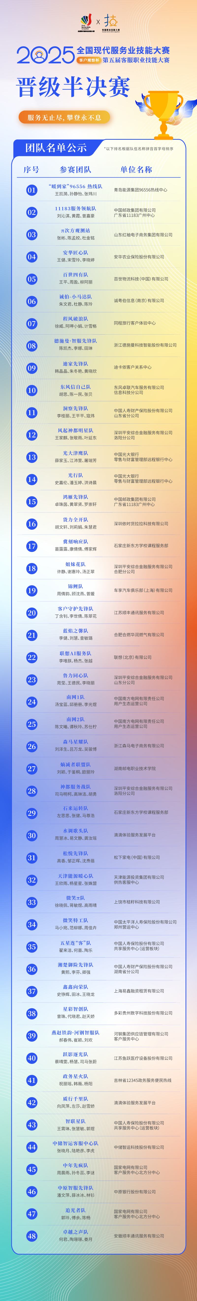 再进一程!恭喜这些队伍成功晋级2025年客服职业技能大赛半决赛~